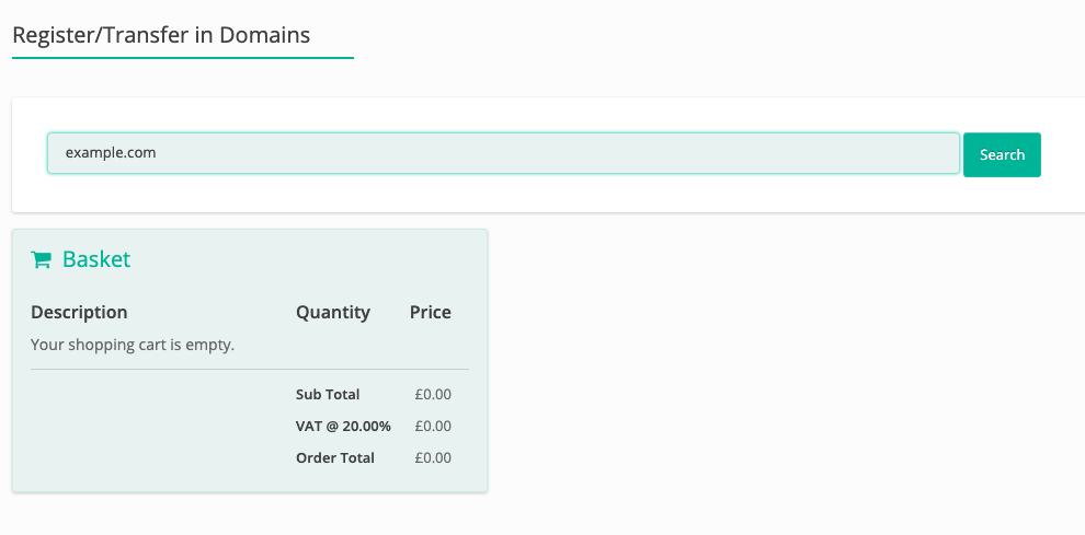 5. If you wish to purchase the domain you've selected, click on the check box and Add to Basket.